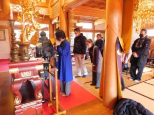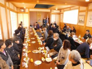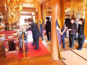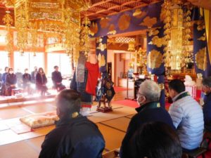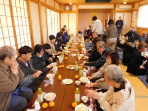 本堂にて、参加者一同は暫し端座(座禅)して心身を調え、各家・各位の家内安全・家門隆昌・身体健全・無病息災・心願成就などを本尊・釈迦如来に祈願し、次いで各家の先祖供養法要を修行しました。その後、客殿に移動して恒例となった『鶴亀うどん』をいただきました。うどんは「つるつる、かめかめ」と縁起の良い福寿長久の食べ物です。各位のご多幸を祈念いたします。