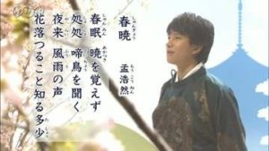 『春眠暁を覚えず 処処啼鳥を聞く 夜来風雨の声 花落つること知る多少』孟浩然「春暁」